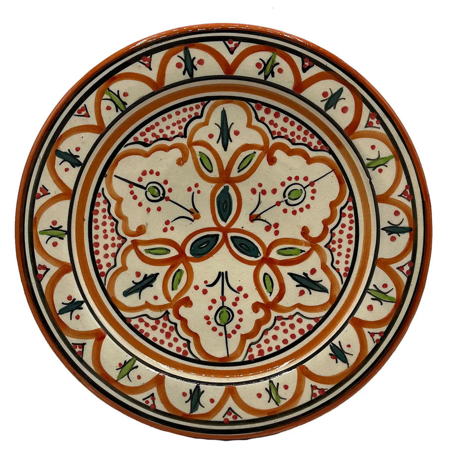 Elegante piatto decorativo realizzato in stile tradizionale marocchino, ispirato ai celebri mosaici Zellige del Marocco. Le decorazioni geometriche e i dettagli artigianali rendono questo pezzo unico e perfetto per aggiungere un tocco autentico alla tua casa.